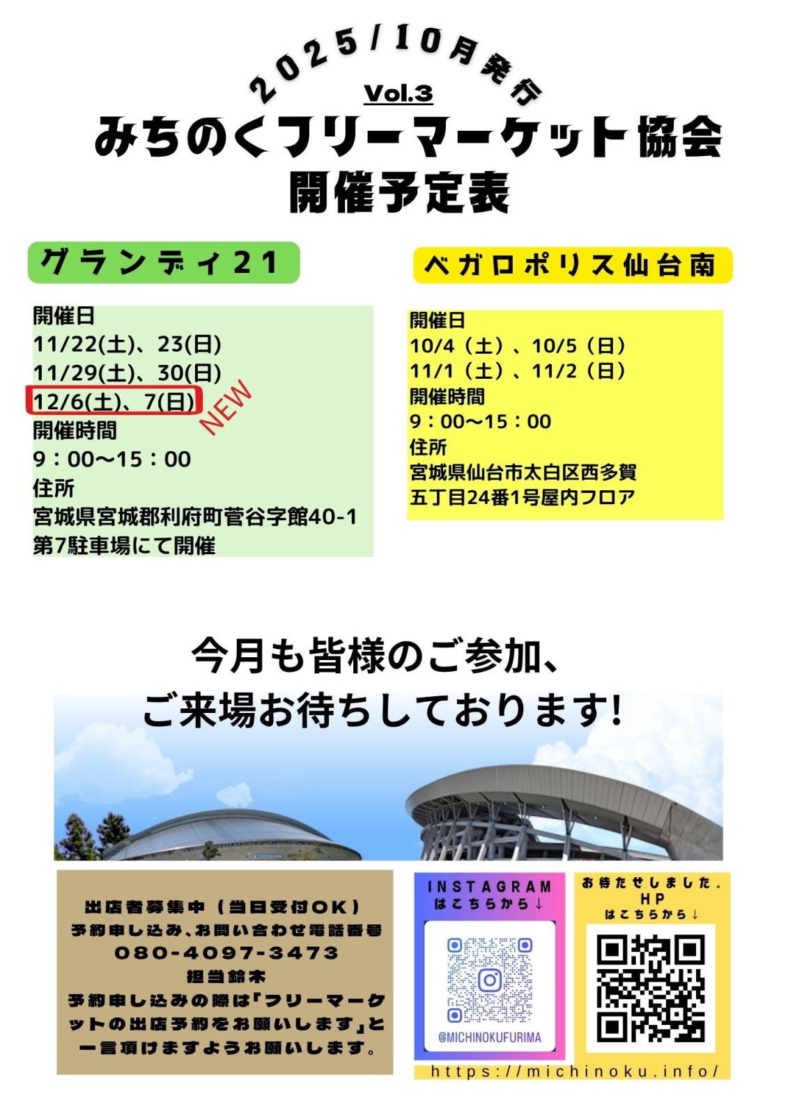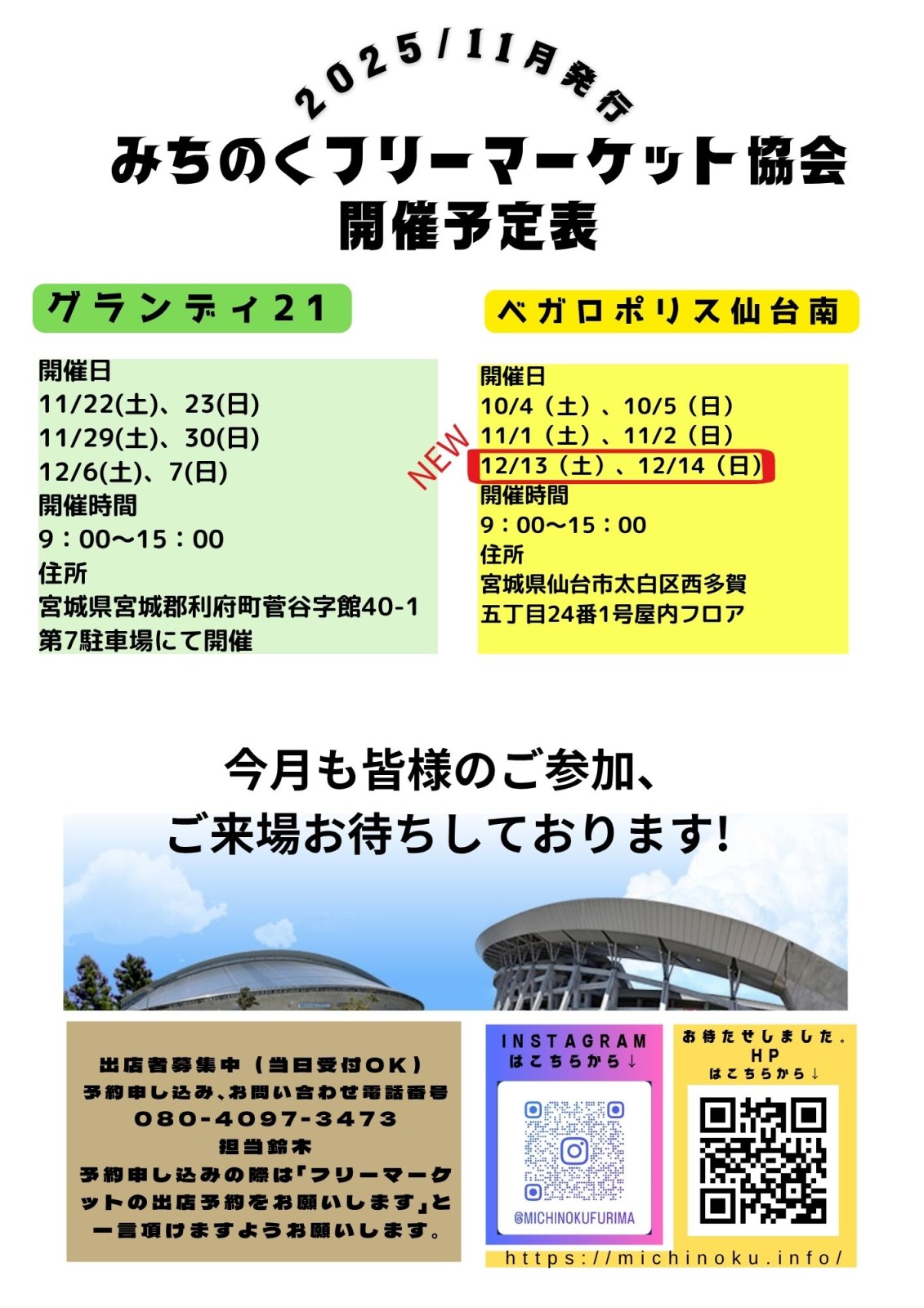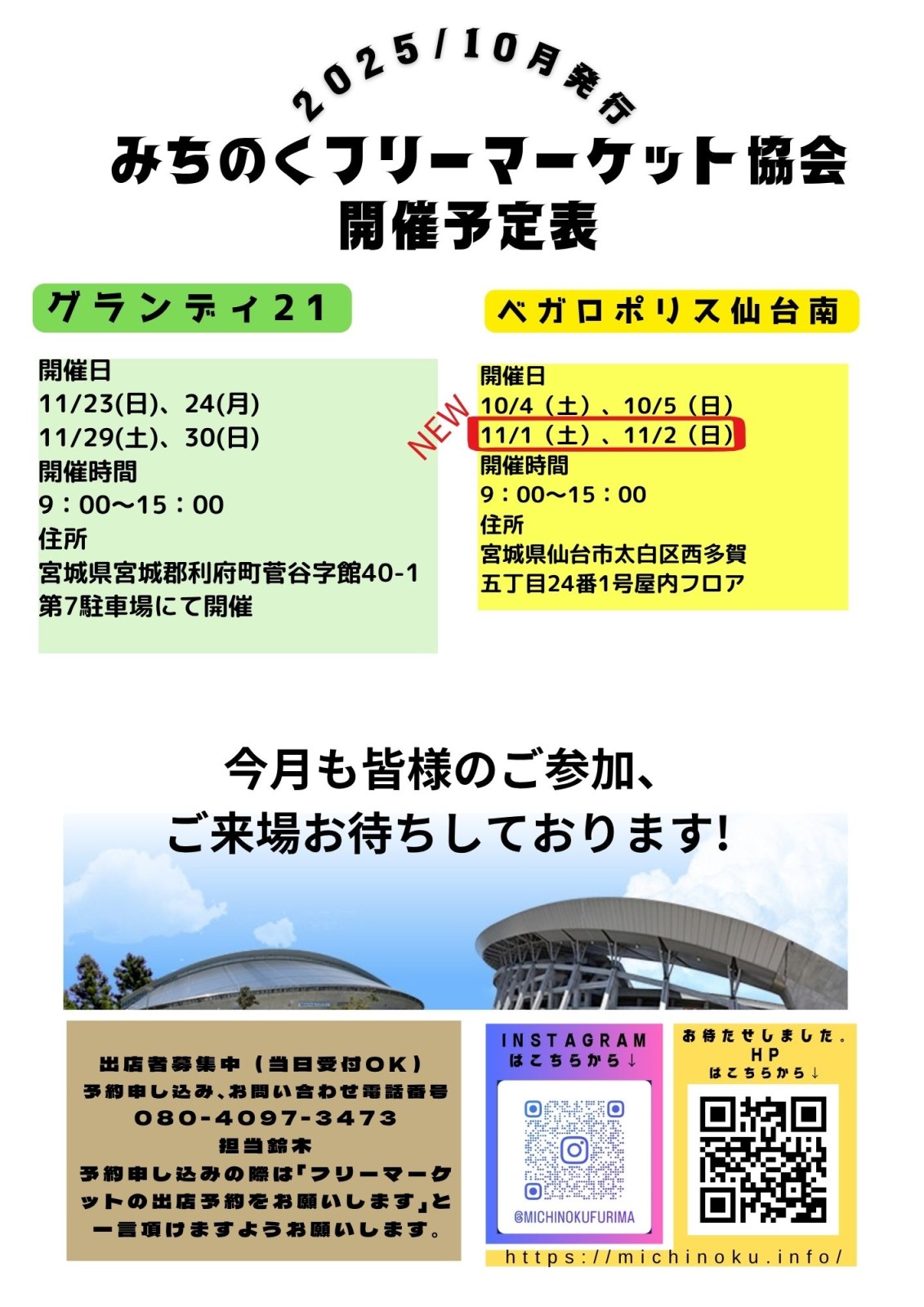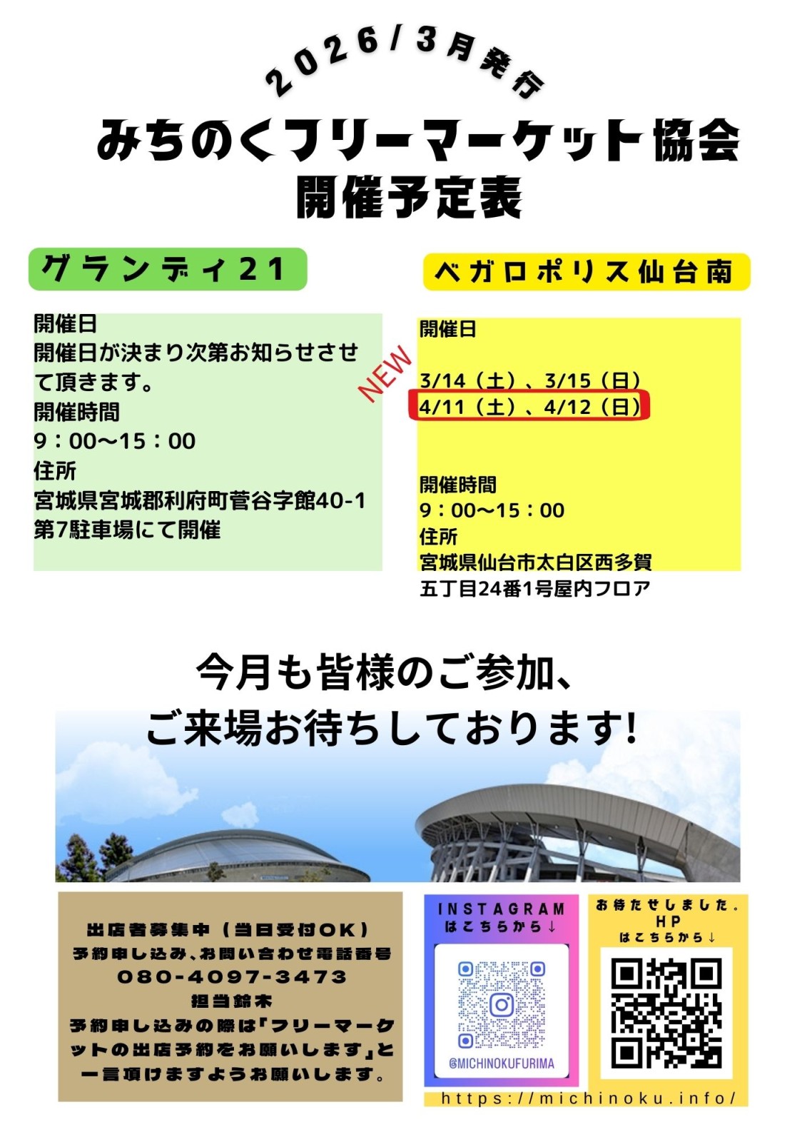 宮城県総合運動場「グランディ21」でのフリーマーケット開催!「グランディ21」でお得なお買物はいかがでしょうか? 洋服・雑貨・手作りアクセサリーなど様々な種類の商品から掘り出し物が見つかるかも!?