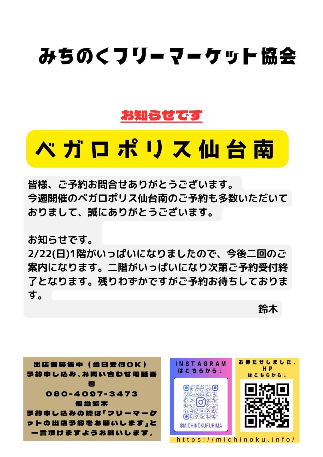 | 開催場所 | 屋内/1階(極楽湯前、ゲームセンター前、パチンコ店前)、2階フロア |