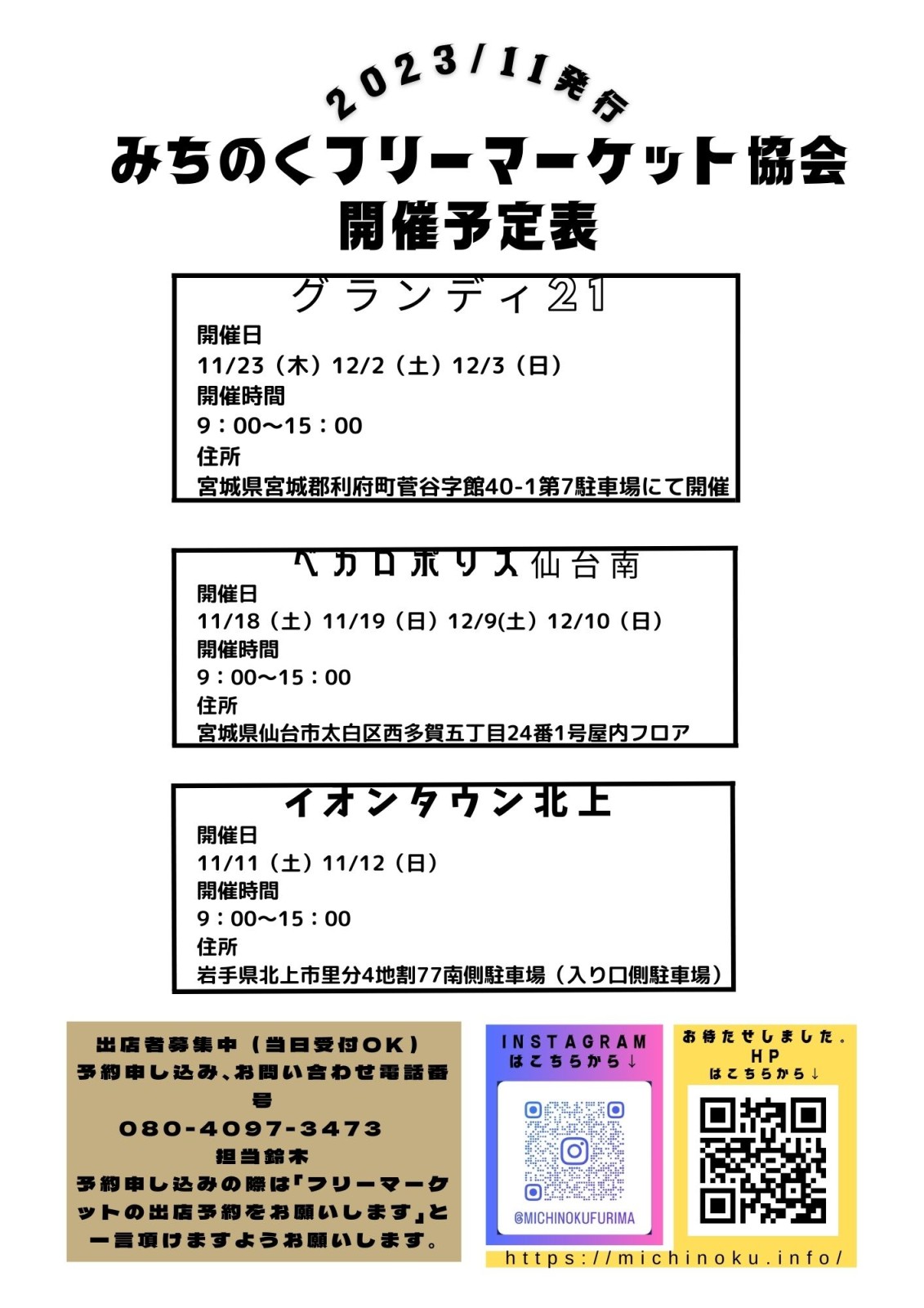 2023年もたくさんの方にご出店、御来場いただき誠にありがとうございました(^_^)来年もどうぞみちのくフリーマーケット協会をよろしくお願いします。