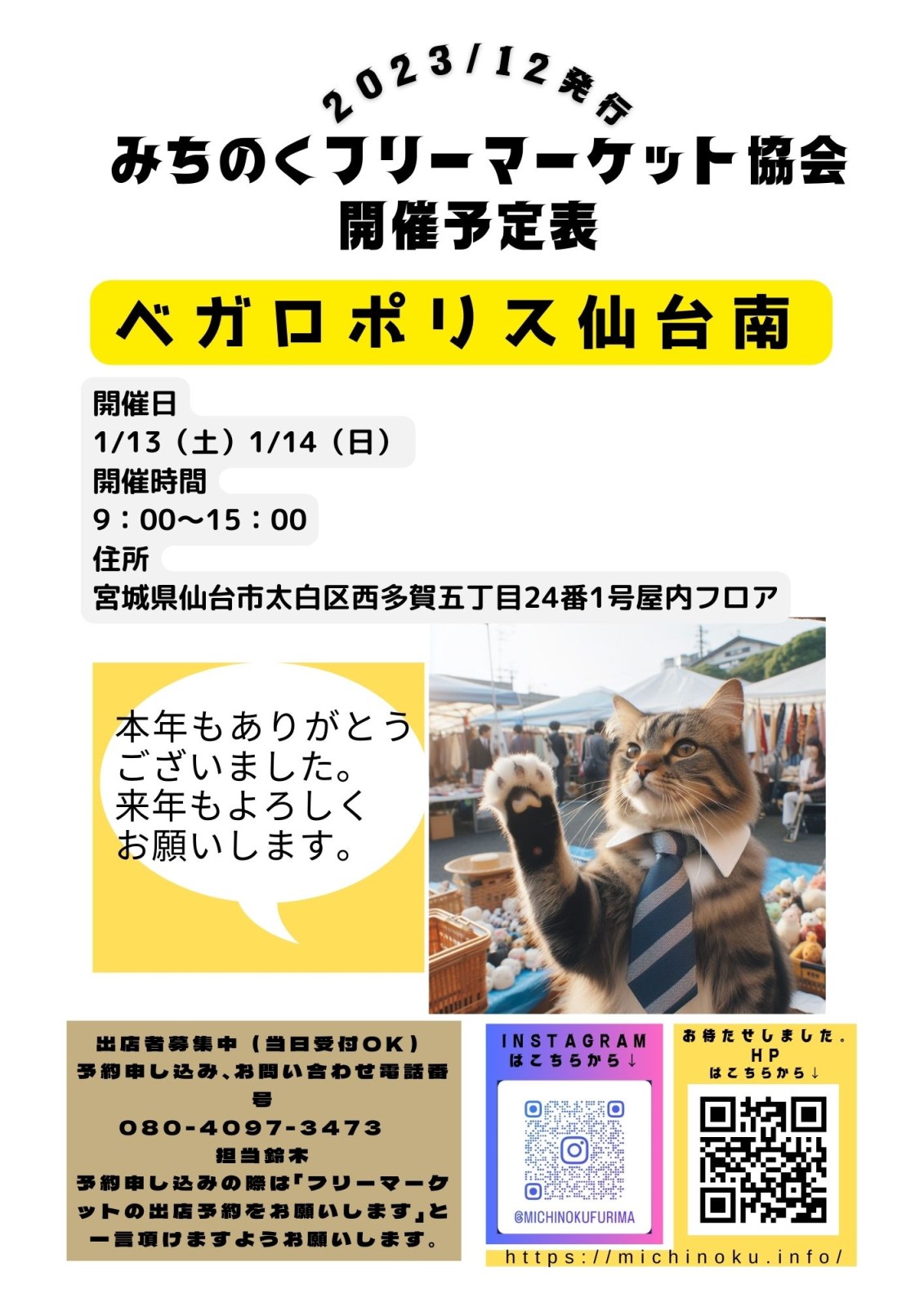 今年もみちのくフリーマーケット協会をよろしくお願いします(^_^)本日ベガロポリスにてフリーマーケット開催です!御来場、ご参加お待ちしております(^_^)